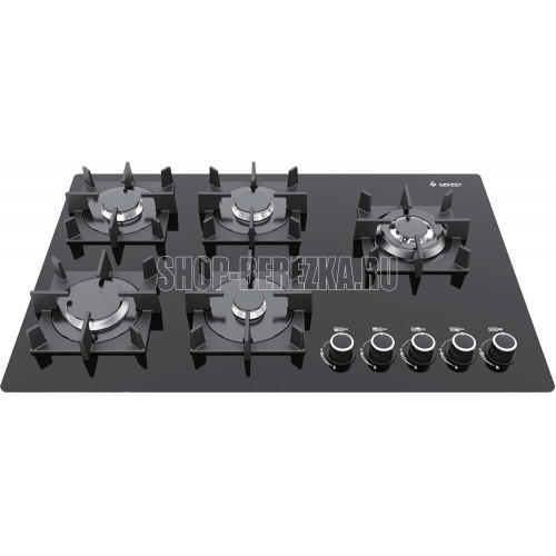 Варочная поверхность: стеклянная. Цвет: черный. Газ-контроль горелок стола. Чугунные решетки горелок стола. Двухзонная горелка. Электророзжиг горелок, встроенный в ручки. Фиксированное положение «малое пламя». Количество зон приготовления: 5. Габаритные размеры ШхГхВ: 80х52.5х10 см.
