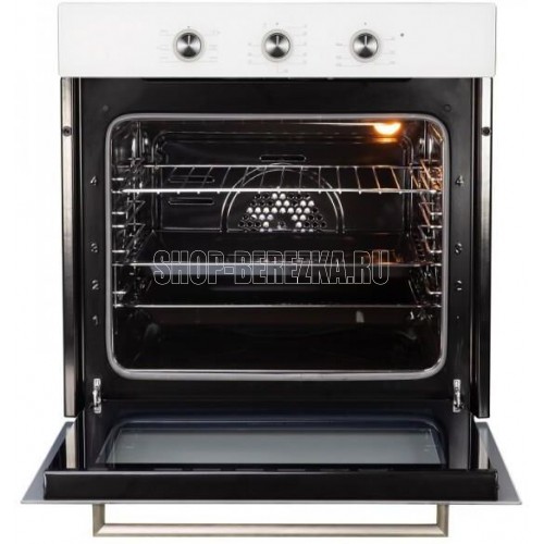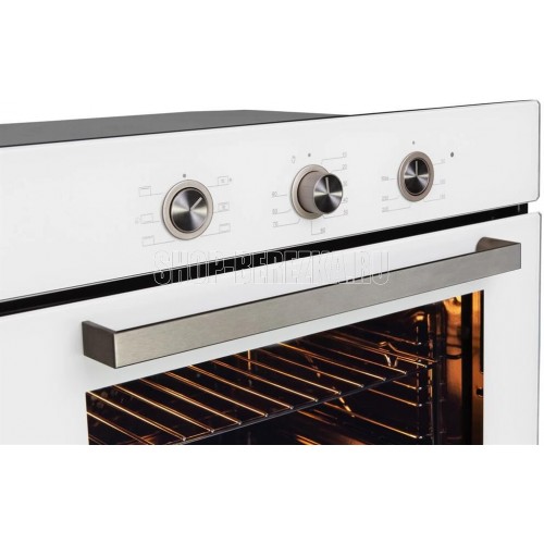 Духовой шкаф (электрический). Цвет: Белый, Цвет фурнитуры: серебристый + нержавеющая сталь, Материал фасада: закаленное стекло, Класс энергопотребления: A+, Управление: утапливаемые переключатели, Объем: 72 литра, Количество функций 6: гриль, верхний нагрев, нижний нагрев, верхний и нижний нагрев, верхний и нижний нагрев с конвекцией, конвекция (разморозка), Мощность: 2100 Вт, МАХ температура нагрева: 260°С, Стекла дверцы: двойное съемное стекло, Панорамное внутреннее стекло Smart Eye, Холодный фронт, Очистка духовки: эмаль Easy Clean, Тангенциальное охлаждение, Хромированные боковые направляющие, Уровней установки противня: 5, Решетка, Противень: стандартный + глубокий, Габариты (ШхГхВ): 595*543*595 мм, Ниша для встраивания (ШхГхВ): 560*550*600 мм, Длина шнура 1300 мм, Вес брутто 33,25 кг, Срок службы до 10 лет