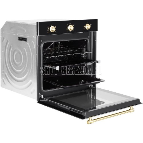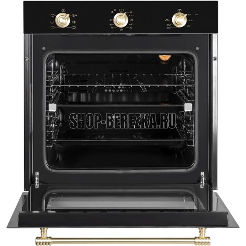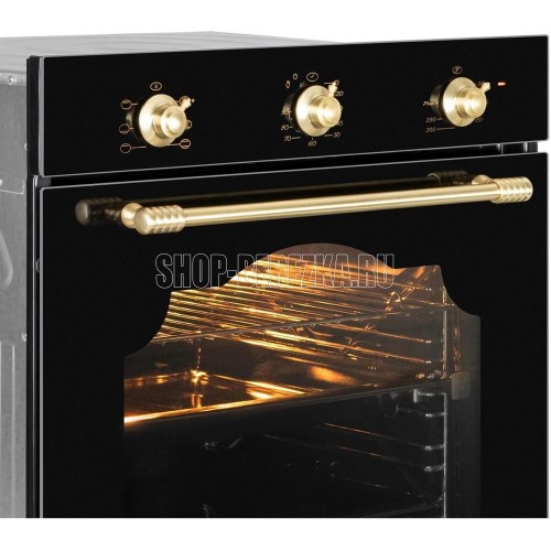 Духовой шкаф (электрический). Цвет: Антрацит, Цвет фурнитуры: брашированное золото, Материал фасада: закаленное стекло, Класс энергопотребления: A+, Управление: поворотные переключатели, Объем: 72 литра, Количество функций 6: гриль, верхний нагрев, нижний нагрев, верхний и нижний нагрев, верхний и нижний нагрев с конвекцией, конвекция (разморозка), Мощность: 2148 Вт, МАХ температура нагрева: 260°С, Стекла дверцы: двойное съемное стекло, Панорамное внутреннее стекло Smart Eye, Холодный фронт, Очистка духовки: эмаль Easy Clean, Тангенциальное охлаждение, Хромированные боковые направляющие, Телескопические направляющие, Уровней установки противня: 5, Решетка, Противень: стандартный + глубокий, Габариты (ШхГхВ): 595*543*595 мм, Ниша для встраивания (ШхГхВ): 560*550*600 мм, Длина шнура 1300 мм, Вес брутто 36 кг, Срок службы до 10 лет