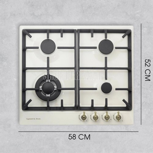 Тип панели газовая Ширина, см 60 Цвет бежевый Количество конфорок 4 Управление фронтальное Переключатели поворотные Материал поверхности эмалированная сталь Комплектация Газовая варочная поверхность - 1 шт. — Штуцеры для подключения к различным газовым источникам - 5 шт. — Дополнительные жиклеры для баллонного газа — 4 шт. — Скоба для крепления к кухонной мебели — 4 шт. — Шурупы для крепления к кухонной мебели — 4 шт. — Клеящаяся уплотнительная прокладка — 1 шт. — Решетки чугунные — 2 шт. — Инструкция по применению. Функциональные особенности Электроподжиг в каждой ручке, тройное кольцо пламени Конструктивные особенности Итальянские грелки Sabaf, увеличенное расстояние между горелками (шире зона готовки), ретро-дизайн, Решетки чугунные Тройное кольцо пламени есть Мощность горелок, Вт 3400; 1880; 1880; 900 Газ-контроль есть Электроподжиг в каждой ручке WOK-горелка есть Матовые колпачки горелок есть Переходники для разных типов газа есть Размеры, см 58х50 Размеры для встраивания (ВхШхГ)