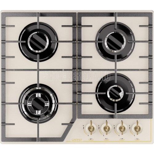Размеры монтажного проема, ШхГ, см 55,4 х 48,6. Ширина, см 60. Глубина, см 52,5. Высота, см 10. Цвет модели Кремовый. Дизайн Ретро. Материал варочной поверхности Стекло. Материал решеток варочной поверхности Чугун. Двухзонная горелка варочной поверхности. Газ-контроль горелок стола. Электророзжиг горелок стола Розжиг встроен в ручки. Управление конфорками стола Механическое. "Фиксированное положение ""малое пламя"".