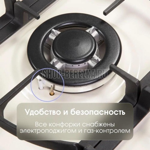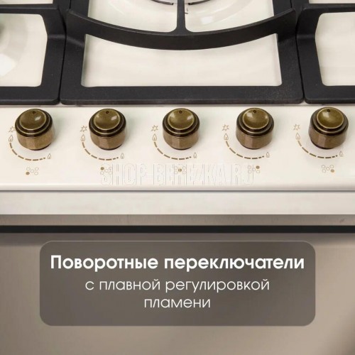 Общие параметры: Мощность горелок: • 1 горелка – 3800 Вт (WOK) • 1 горелка – 2900 Вт • 2 горелки – 1700 Вт • 1 горелка – 900 Вт • Общая мощность – 11000 Вт • Итальянские горелки Sabaf • WOK-конфорка с тройным контуром пламени • Электроподжиг на каждой конфорке • Газ-контроль на каждой конфорке