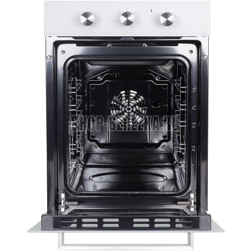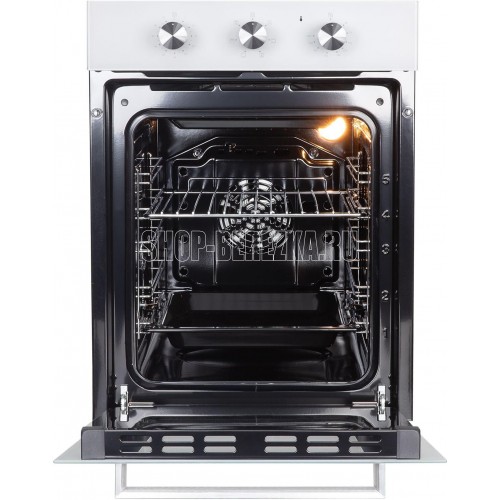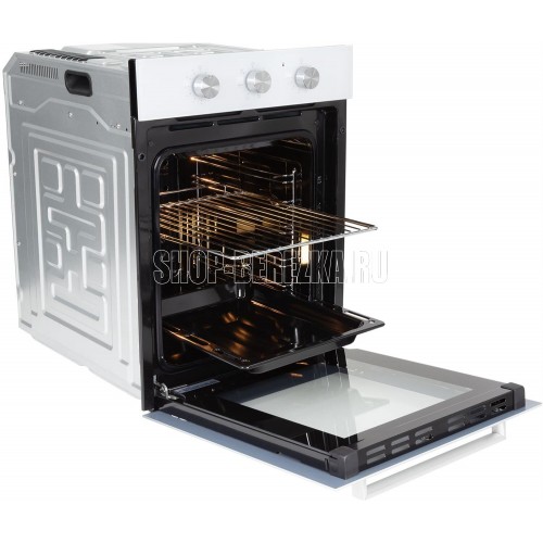 Духовой шкаф (электрический). Цвет: Белый, Цвет фурнитуры: нержавеющая сталь, Материал фасада: закаленное стекло, Класс энергопотребления: A, Управление: поворотные переключатели, Объем: 51 литра, Количество функций: 6, Функции гриль, гриль с конвекцией, нижний нагрев, верхний и нижний нагрев, верхний и нижний нагрев с конвекцией, подсветка. Мощность: 2200 Вт, МАХ температура нагрева: 250°С, Стекла дверцы: двойное съемное стекло, Панорамное внутреннее стекло Smart Eye, Холодный фронт, Очистка духовки: эмаль Easy Clean, Тангенциальное охлаждение, Хромированные боковые направляющие, Уровней установки противня: 5, Решетка, Противень: стандартный, Габариты (ШхГхВ): 445*600*600 мм, Ниша для встраивания (ШхГхВ): 410*550*589 мм, Длина шнура: 1230 мм, Вес нетто: 23 кг, Вес брутто: 26 кг, Срок службы до 10 лет