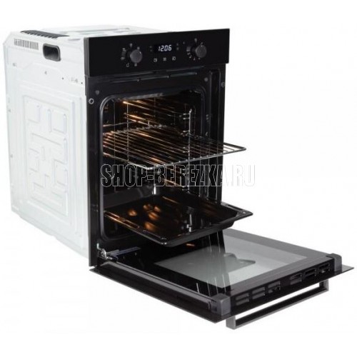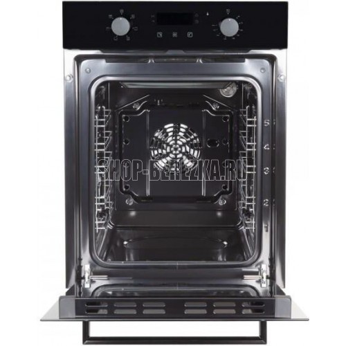 Духовой шкаф (электрический). Цвет: Черный, Цвет фурнитуры: нержавеющая сталь, Материал фасада: закаленное стекло, Класс энергопотребления: A, Управление: сенсор + поворотные переключатели, Программатор: электронный, Объем: 51 литра, Количество функций: 6, Функции: гриль, гриль с конвекцией, нижний нагрев, верхний и нижний нагрев, верхний и нижний нагрев с конвекцией, подсветка. Мощность: 2200 Вт, МАХ температура нагрева: 250°С, Стекла дверцы: двойное съемное стекло, Панорамное внутреннее стекло Smart Eye, Холодный фронт, Очистка духовки: эмаль Easy Clean, Тангенциальное охлаждение, Хромированные боковые направляющие, Уровней установки противня: 5, Решетка, Противень: стандартный, Габариты (ШхГхВ): 445*600*600 мм, Ниша для встраивания (ШхГхВ): 410*550*589 мм, Длина шнура: 1230 мм, Вес нетто: 24,5 кг, Вес брутто: 26 кг, Срок службы до 10 лет.