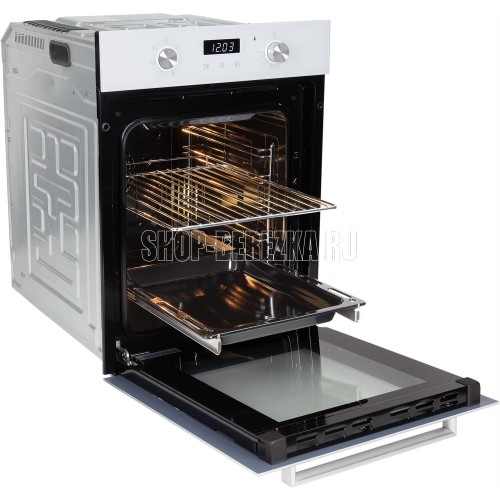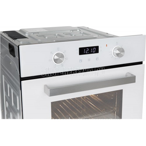 Духовой шкаф (электрический). Цвет: Белый, Цвет фурнитуры: нержавеющая сталь, Материал фасада: закаленное стекло, Класс энергопотребления: A, Управление: сенсор + утапливаемые переключатели, Программатор: электронный, Объем: 51 литр, Количество функций: 6, Функции: гриль, гриль с конвекцией, нижний нагрев, верхний и нижний нагрев, верхний и нижний нагрев с конвекцией, подсветка. Мощность: 2200 Вт, МАХ температура нагрева: 250°С, Стекла дверцы: тройное съемное стекло, Панорамное внутреннее стекло Smart Eye, Холодный фронт, Очистка духовки: эмаль Easy Clean, Тангенциальное охлаждение, Хромированные боковые направляющие, Телескопические направляющие, Уровней установки противня: 5, Решетка, Противень: стандартный, Габариты (ШхГхВ): 445*600*600 мм, Ниша для встраивания (ШхГхВ): 410*550*589 мм, Длина шнура: 1230 мм, Вес нетто: 24,8 кг, Вес брутто: 27,7 кг, Срок службы до 10 лет.