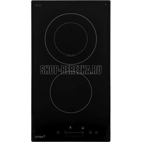 Встраиваемая электрическая варочная поверхность, 30 см , дизайн домино , 2 зоны нагрева, зона расширения нагрева, размер 290*520 мм, общая мощность 3 кВт, китайская стеклокерамика, скошенный край отсутвует, сенсорная панель управления - слайдер, красная подсветка, таймер 99 мин, индикация остаточного тепла, защитное автоотключение, блокировка от детей верхняя зона нагрева диаметр 200 мм 1,8/0,9 кВт нижняя зона нагрева диаметр 165 мм 1,2 кВт