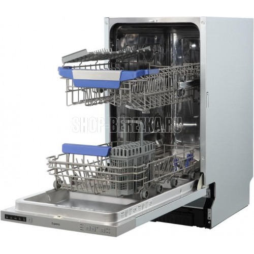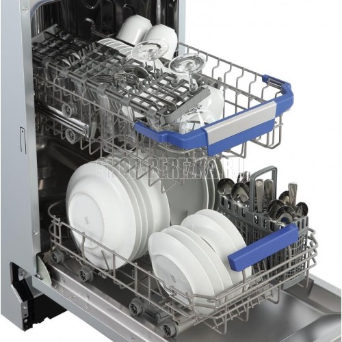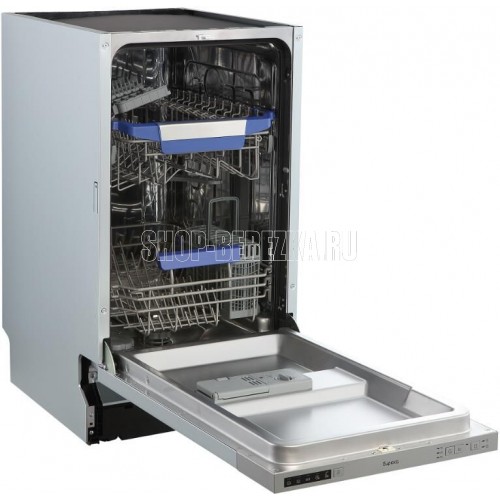 Габариты ШхВхГ, см: 44,8х81,5х55; Тип установки: Встраиваемая; Тип сушки: Конденсационная; Максимальная температура: 65 ℃; Минимальная температура: 45 ℃; Количество программ: 5; Количество комплектов: 9; Основные программы: ЭКО, 90 минут, Быстрая, Интенсивная, Обычная; Таймер отсрочки запуска; Расход воды за цикл: 9 л; Уровень шума при работе: 49 дБ; Энергопотребление за цикл: 201 кВт; Дополнительные функции: Луч на полу, 1/2 загрузки, Отложенный старт, AquaStop