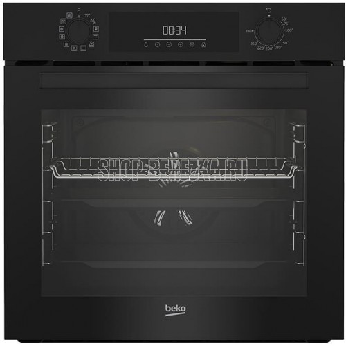 Электрический духовой шкаф; 12 режимов; LED дисплей; поворотные переключатели; металлические направляющие; объем - 72л; 2 стекла дверцы; 1 решетка; 1 противень; 1 глубокий противень; Цвет: Черный