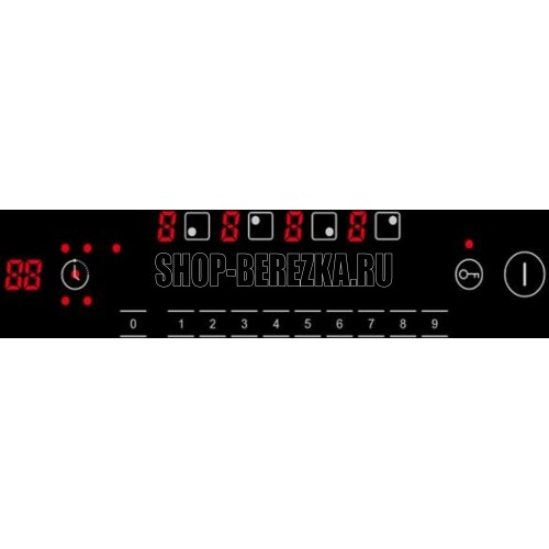 60*52 см. Цвет черный. Максимальная мощность потребления - 6 кВт. Количество ступеней мощности 9. Сенсорное управление. Количество зон нагрева - 4 (1.2/1.2/1.8/1.8 кВт). Таймер 1-99. Автоматическое отключение. Защита от перегрева. Блокировка панели управления. Индикация наличия посуды. Звуковая индикация.