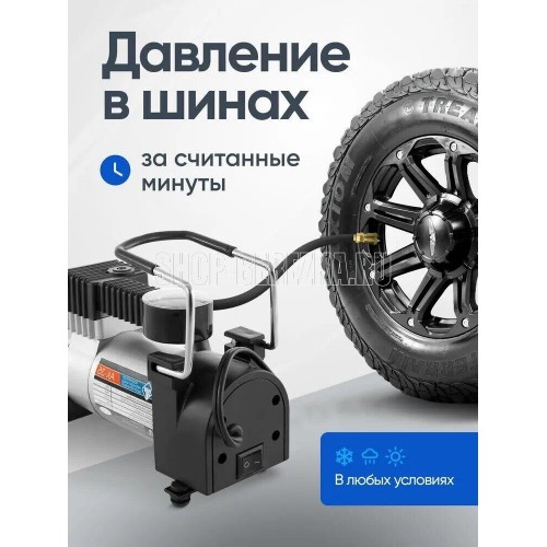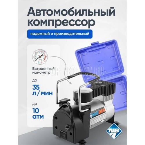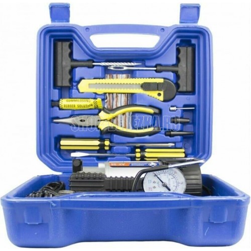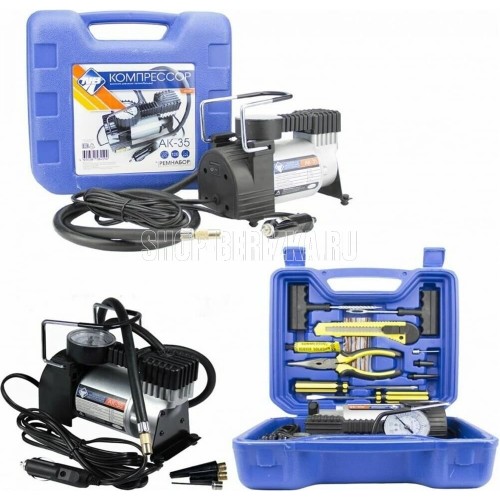 Мощность – 150 Вт. Максимальная сила тока – 15 А. Максимальное давление – до 10 кг/см2 (140PSI/10Bar) Производительность – до 35 л/мин. Шнур питания – 2,7 м. Воздушный шланг – 1 м. Пластиковый кейс для хранения и переноски Питание от гнезда прикуривателя Комплект насадок-переходников – 3 шт. Встроенный в штекер питания предохранитель Набор инструментов: плоскогубцы удлиненные – 1 шт., отвертка плоская – 1 шт., отвертка крестообразная – 1 шт., нож с выдвижным лезвием – 1 шт., спиральный рашпиль – 1 шт., шило- 1 шт., жгуты армированные – 3 шт., клей-активатор – 1 шт. Цвет- серебро Напряжение питания — 12В. Состав: металл, пластик