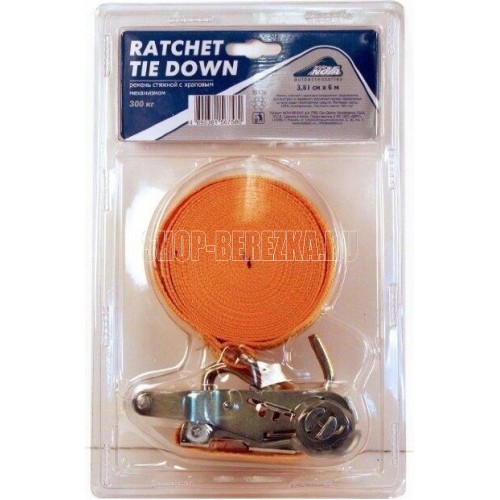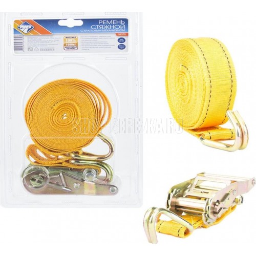 Ремень стяжной с храповым механизмом быстро и надежно закрепит груз. Устойчив к воздействию агрессивных погодных условий. Материал: 100% полипропилен Длина: 6 м. Ширина: 3.8 см. Плотность: 390 г/м2 Допустимая нагрузка 1000 кг