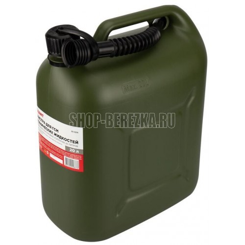 Вертикальная усиленная канистра REXANT объемом 20 л предназначена для хранения и транспортировки топлива и горюче-смазочных материалов. Изготовлена из высококачественного прочного (первичного в производстве) полиэтилена (ПЭНД). Имеет международный сертификат соответствия перевозки легковоспламеняющихся грузов, наличие которого дает возможность заправлять канистру на любых АЗС, находящихся на территории РФ и ЕС. Изделие имеет: боковые ребра жесткости, утолщенные стенки (которые позволяют выдержать высокие нагрузки при экстремальных условиях эксплуатации), зеленый цвет изделия, широкую уздечку держания заливного шланга (которая не прокручивается вместе с крышкой и не ломается на морозе), выемку на дне изделия для руки, эргономичную широкую ручку, усиленный шов на дне, детскую защиту на крышке, широкую горловину для залива и заправки, гофрированный гибкий шланг с системой «антибульк», маслобензостойкий уплотнитель на крышке, антистатические присадки, дополнительную ручную обработку швов и горловины.