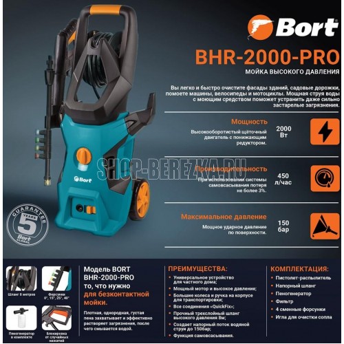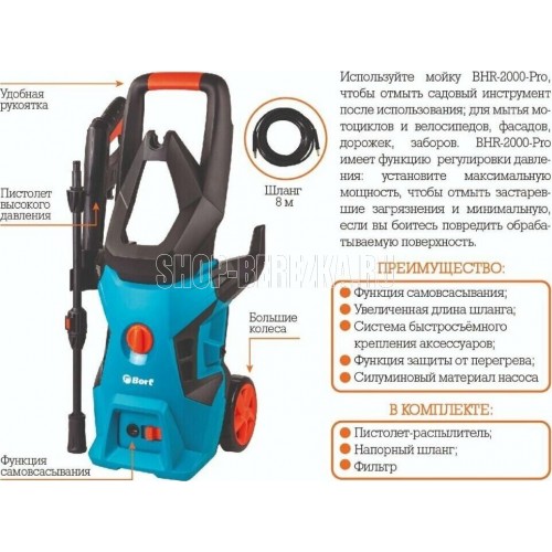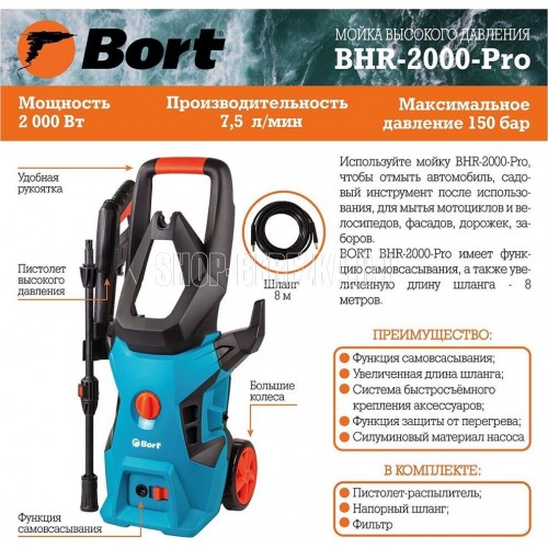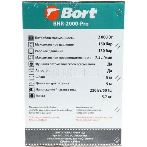Потребляемая мощность 2000 Вт; Максимальное давление 150 бар; Рабочее давление 130 бар; Материал корпуса насоса Силумин ; Максимальная производительность 7,5 л/мин; Функция автоматического всасывания; автостоп; Шланг 8 м; Длина шнура питания 5 м; Напряжение 220...240 В; Частота тока 50 Гц; Вес изделия 7 кг; 7,78 (0) кг; Пистолет-распылитель, Напорный шланг, Фильтр; Функция самовсасывания, Быстросъемное подключение аксессуаров, Автоматическое отключение при перегреве., Увеличенная длина шланга 8м; гарантия 2 г