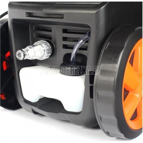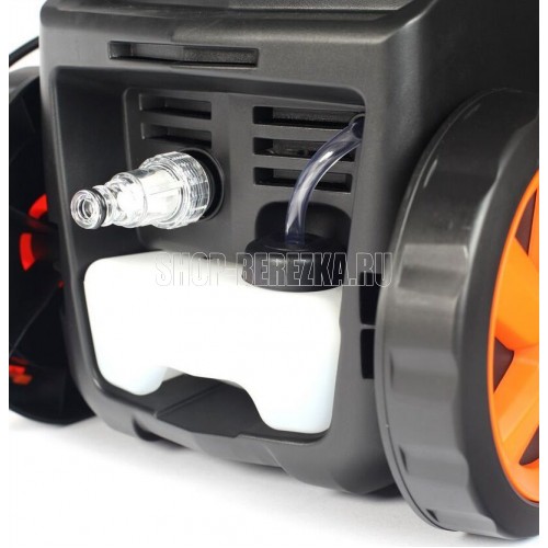 Поток воды, л/час 420, Макс. давление, бар 120, Длина кабеля, м 2, Длина шланга, м 5, Пистолет, Удлинитель, Регулируемая насадка, Дополнительный фильтр, Бокс для крепления аксессуаров, Колеса, Бачок для химии, Тип помпы самовсасывающая Al сплав, Мощность двигателя, л.с. 1.9.