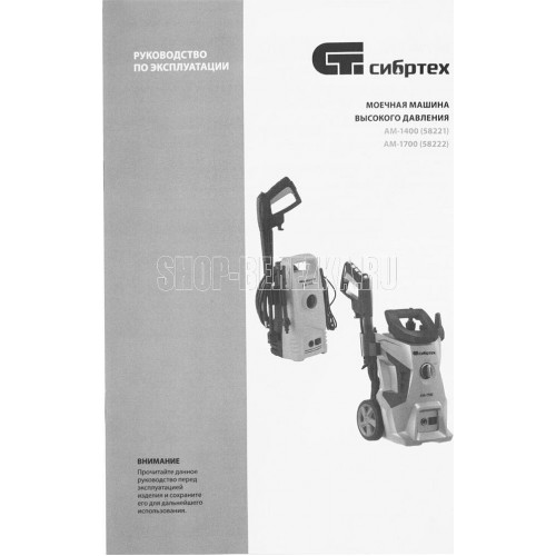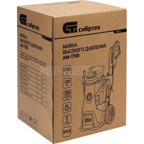 СИБРТЕХ Моечная машина высокого давления АМ-1700, 1700 Вт, 130 бар, 350 л/ч, колёсная 58222
