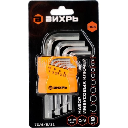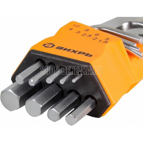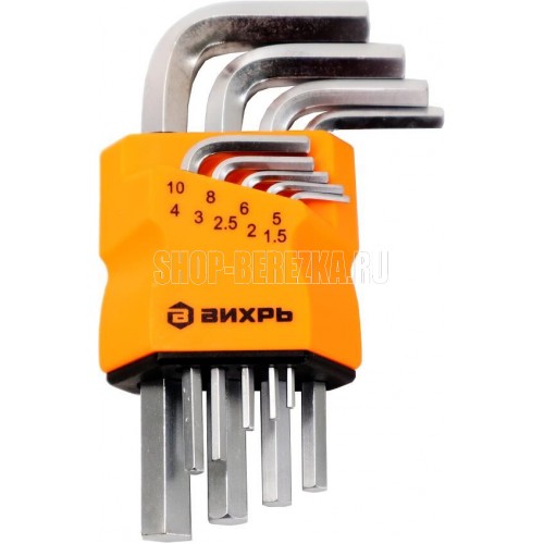 ВИХРЬ Набор ключей имбусовых HEX, 9 шт, 1.5-10 мм