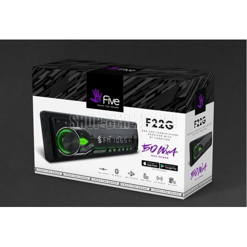 Поддерживаемые форматы MP3, WMA, WAV, FLAC Карта памяти до 32 Гб Бренд Five Тип товара автомагнитола Модель F22G Цвет подсветки зеленый Максимальная выходная мощность 4x50 Вт Панель управления несъемная Напряжение 12 В Рабочая частота FM 87,5-108 МГц Чувствительность 15 дБ