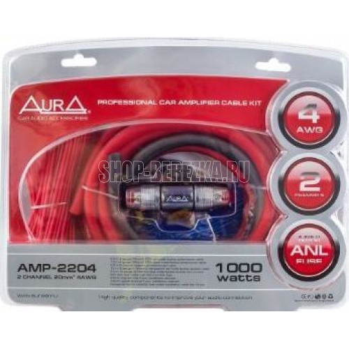 Комплект для подключения 2-х канального усилителя. Силовой кабель 4AWG (20мм2) красный — 5 метров. Силовой кабель 4AWG (20мм2) черный — 1 метр. Колба MiniANL + предохранитель 60A. RCA-кабель: 5 метров, 2 канала, витая пара (RCA-A150 MkII). Акустический кабель 16AWG (2 1,5мм2) — 10 метров. Провод «remote» 18AWG (0,75мм2) синий — 5 метров. Клемма кольцевая для силового кабеля сечением 4AWG (20мм2): 2 шт. Клемма U-образная для силового кабеля сечением 4AWG (20мм2): 2 шт. Шестигранник. Стяжки — 10шт. Упаковка: блистер.