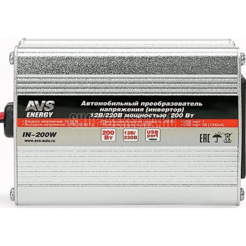 Автомобильный адаптер (инвертер) 12/220V позволяет владельцам автомобилей в дорожных условиях сделать возможной работу бытовой аудио-видео техники, компьютера, ноутбука и прочей оргтехники. Встроенная схема защиты предохраняет устройство от преждевременного выхода из строя в случаях низкого или высокого входного напряжения, неправильной полярности, короткого замыкания во входных цепях питания подключаемого устройства. Характеристики •Входное напряжение: 12В •Выходное напряжение: 220В •Выходная частота: 50Гц •Номинальная мощность: 200Вт •Допустимая пиковая мощность: 400Вт •Размеры: 8,2 х 8,9 х 4,7 см •Защита от короткого замыкания •Защита от перегрева Материал: металл, пластик Комплектация Преобразователь Состав: Металл, пластик