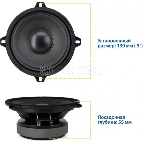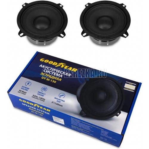 Автомобильные колонки Goodyear GY-М-130 обеспечивают экстремальный уровень громкости при воспроизведении средних и низких частот от маломощного усилителя и от штатного головного устройства. Они отлично подойдут для замены оригинальных динамиков и модернизации штатной акустики. Для достижения наиболее широкого диапазона звучания, рекомендуется использовать в сочетании с высокочастотными динамиками. Акустическая система Goodyear GY-М-130 – это 2 автомобильные колонки с мощностью 90 Вт. Диффузоры изготовлены из акустической бумаги. Благодаря неплотной поверхности с натуральной неравномерной фактурой такие диффузоры дают наиболее тёплое и мягкое звучание с богатыми и реалистичными тембрами в широком диапазоне частот 92 Гц – 12 КГц. Система «Extreme volume», сочетающая в себе высокую чувствительность динамиков 91,6 дБ и сопротивление 4 Ом, позволяет добиться экстремальной громкости даже при минимальной мощности головного устройства. GY-M-130 (арт.: GY020015) – размер: 5", мощность: 90 Вт, диапазон частот: 92 Гц – 12 КГц