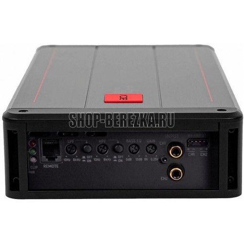 оминальная мощность 4 Ом: СТЕРЕО 100Вт х 2, MOHO в мостовом включении: 300Вт х 1 Номинальная мощность 2 Ом: СТЕРЕО 150Вт х 2 Чувствительность: 200мВ - 8В Отношение сигнал/шум: >91 дБ Коэффициент гармонических искажений: (THD) @ 1 кГц (4 Ом) 0,05% Особенности модели Класс усилителя: D Стабильная работа на нагрузке: 2 и 4 Ом Bass Boost: 0~12дБ Диапазон частот: 10 Гц ~ 50 кГц Общие характеристики Размеры: 174x145x52 мм Питание Рабочее напряжение: 10-15В пост. ток Разделение каналов Разделение каналов: >60 дБ Low pass фильтр: 10Гц ~ 8кГц High pass фильтр: 10Гц ~ 8кГц Число каналов: 2/1
