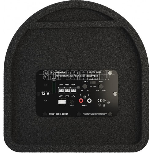 АВТОМОБИЛЬНЫЙ АКТИВНЫЙ САБВУФЕР 25-см (10”) Сабвуфер со встроенным усилителем класса A/B Функция Bass Boost Номинальная выходная мощность (RMS): 200 Вт Пиковая выходная мощность: 1200 Вт Диффузор из непрессованной целлюлозы с влагозащитной пленкой Диаметр диффузора: 25 см (10”) Диаметр звуковой катушки: 3.81 см (1.5”) Высококачественный ферритовый магнит: 35 унций (992 г) Импеданс: 4 Ом Чувствительность: 88 дБ Диапазон воспроизводимых частот: 45 - 1000 Гц Габариты устройства: 310 x 292 x 518 мм Вес: 7.3 кг