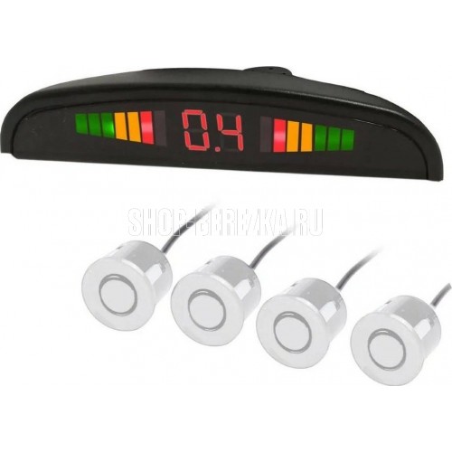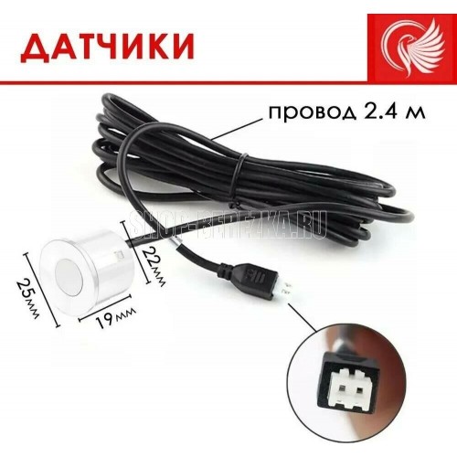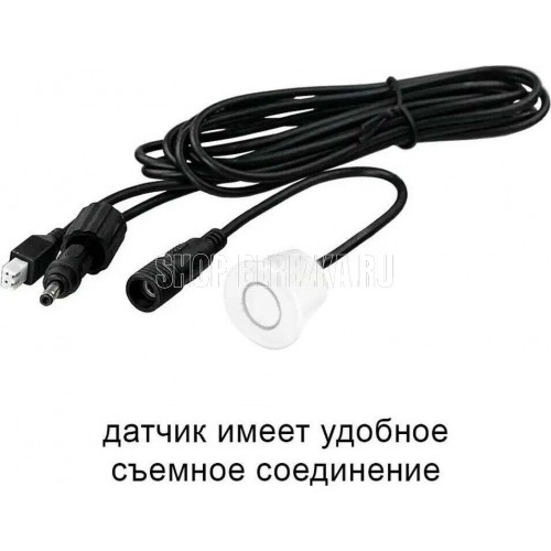 Комбинированные парктроники, цвет белый. Размер 22х18х5 см Диаметр установочного отверстия 22мм. LED-индикатор графическая и цифровая индикация звуковое оповещение шаг измерения расстояния: 0,1м точная дальость обнаружения: от 200 до 30 см диаметр: 22 мм напряжение: 12 в