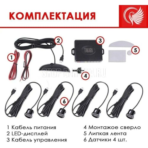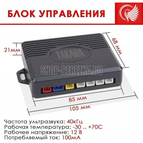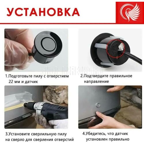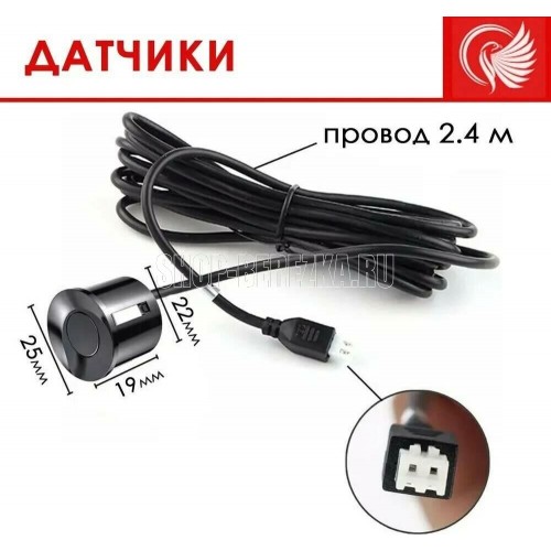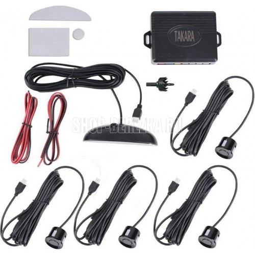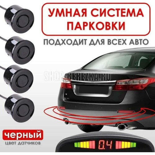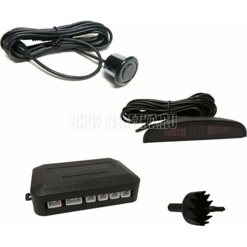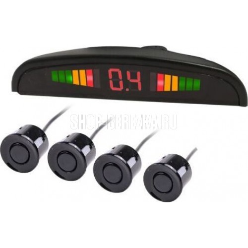 Парковочный радар, парктроники 4 шт, цвет черный. Размер 22х18х5 см Диаметр установочного отверстия 22мм. LED-индикатор графическая и цифровая индикация звуковое оповещение шаг измерения расстояния: 0,1м точная дальость обнаружения: от 200 до 30 см напряжение: 12 в