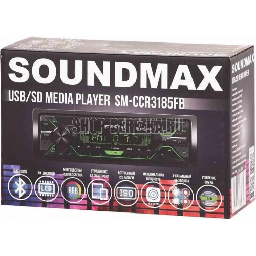 Фиксированная панель Монохромный ЖК-дисплей Высокочувствительный цифровой тюнер Память на 18 FM станций Поддержка носителей USB/SD до 32 ГБ Максимальная выходная мощность: 4 х 50 Вт Bluetooth (поддержка A2DP) Функция Hands-free Управление через мобильное приложение для Android и IOS Встроенный микрофон 4-канальный выход RCA (2xRCA) (2 В) Разъем AUX (3,5 мм) на передней панели RGB подсветка кнопок