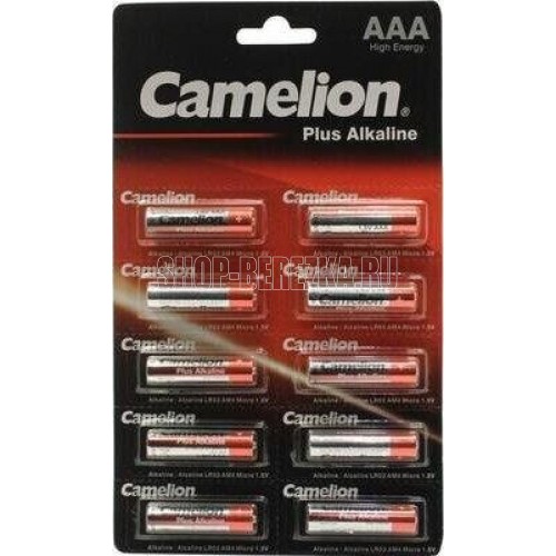 Батарейка алкалиновая Camelion LR03-BP1x10P, напряжение 1,5В, емкость 1250мА*ч, кол-во в упаковке 10 шт., размер упаковки 135x225x12 мм, использовать при температуре от -18 до + 55 °C, хранить в сухом помещении при температуре от +15 до +25°C. Срок хранения 10 лет.