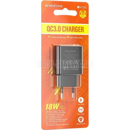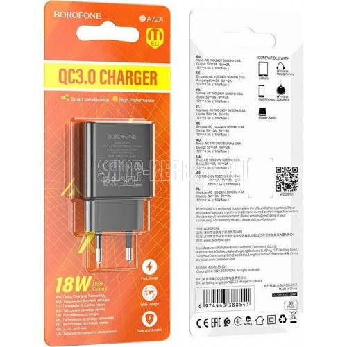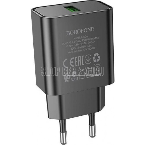BOROFONE (6974443388541) BA72A Spring 1USB QC3.0 черный