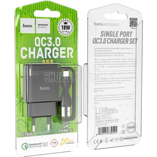 HOCO (6931474732507) СЗУ HOCO C72Q Glorious single port charger черный