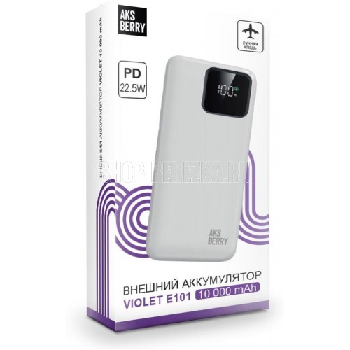 AKSBERRY (6920680876877) E101 Violet быстрая зарядка PD22.5W/QC22.5W с дисплеем 10000mAh, белый