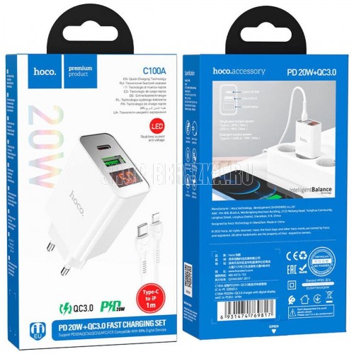 HOCO (6931474769824) C100Aaa 1USB+1Type-C 3.0A QC3.0 PD 20W , White
