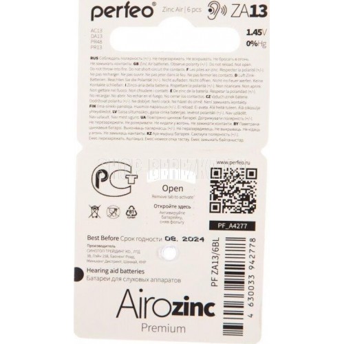 Perfeo Airozinc Premium созданы специально для слуховых аппаратов и отличаются долгим сроком службы при высоком постоянстве выходного напряжения. Используемая технология обеспечит длительное время работы аналоговых и цифровых слуховых аппаратов, благодаря отличной энергоэффективности и увеличенной мощности. Типоразмер ZA13, AC13, DA13, PR48, PR13. Вид упаковки блистер. В упаковке 6 шт. В коробке 60 шт
