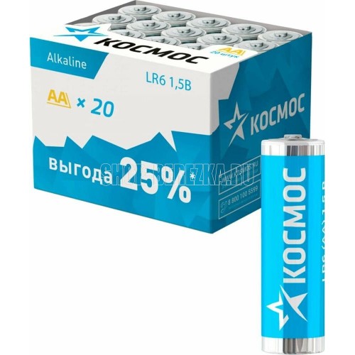 Батарейки алкалиновые, напряжение: 1.5 форма упаковки - коробка, в коробке - 20 шт., для питания устройств с низким и средним потреблением энергии: беспроводные мышки, джойстики, клавиатуры, фонари и пр.