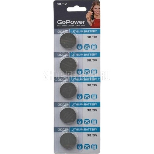 Тип: Дисковые литиевые Типоразмер: CR2025 Номинальное напряжение: 3 В Упаковка: отрывной блистер 5 штук