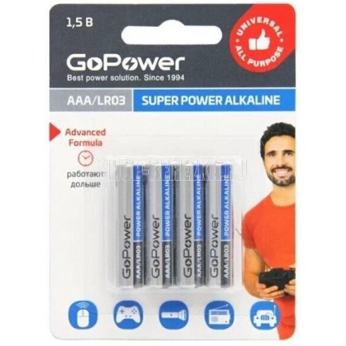 GOPOWER (00-00017749) LR03 AAA BOX20 SHRINK 4 ALKALINE 1.5V