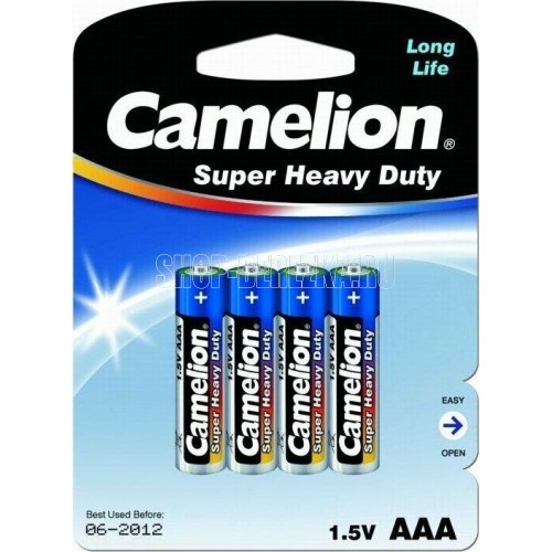 Батарейка Camelion R03P-BP4B, напряжение 1,5В, емкость 550мА*ч, кол-во в упаковке 4 шт., размер упаковки 84x114x15 мм,использовать при температуре от -18 до + 55 °C, хранить в сухом помещении при температуре от +15 до +25°C. Срок хранения 3 года.