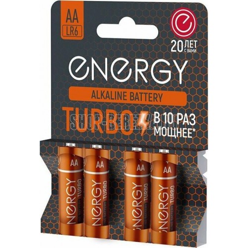 Батарейка алкалиновая Energy LR6/4B Типоразмер - LR6 / АА Серия Turbo Улучшенная структура цинка Высокая плотность активных материалов Максимальная мощность Защита от протечек Стальной корпус с увеличенной толщиной стенки Экологичная упаковка, без использования пластика Срок предэксплуатационного хранения - 7 лет 4 шт в блистере