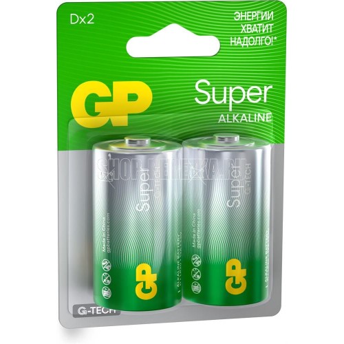 Алкалиновые батарейки GP Super Alkaline G-Tech 13А типоразмера D - 2 шт. на блистере