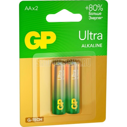 Алкалиновые батарейки GP Ultra Alkaline G-Tech 15А AA - 2 шт. на блистере
