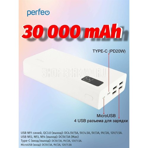 PERFEO (PF_D0162) MOUNTAINS - 30000 mAh , белый