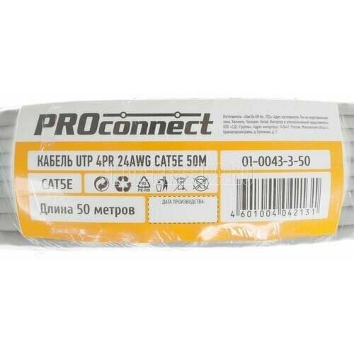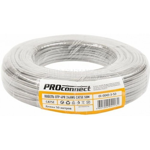 PROCONNECT (01-0043-3-50) КАБЕЛЬ ВИТАЯ ПАРА ОМЕДНЕННЫЙ, U/UTP, КАТЕГОРИЯ 5E, PVC, 4PR, 24AWG, 50 М, ВНУТРЕННИЙ, СЕРЫЙ