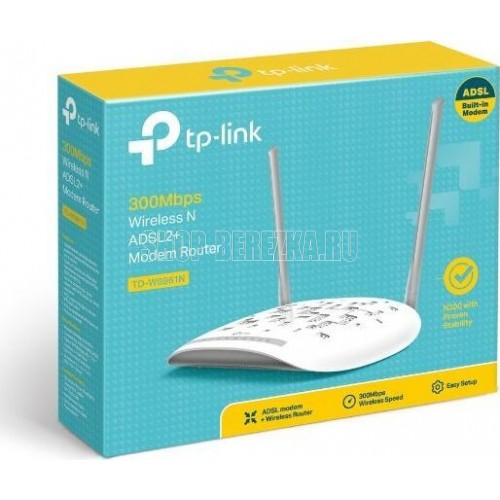 Подключение: ADSL, стандарт Wi-Fi: 802.11 b, a, g, n, частотный диапазон Wi-Fi: 2.4 ГГц, макс. скорость беспроводного соединения: 300 Мбит/с, LAN-портов: 4, несъемных антенн: 2, мощность передатчика: 20 дБм, TD-W8961N
