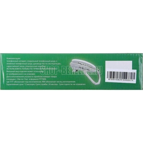 | Дополнительная информация | импульсный набор номера, сброс |