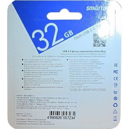 | Наименование | Флешка SmartBuy Stream USB 2.0 32GB |