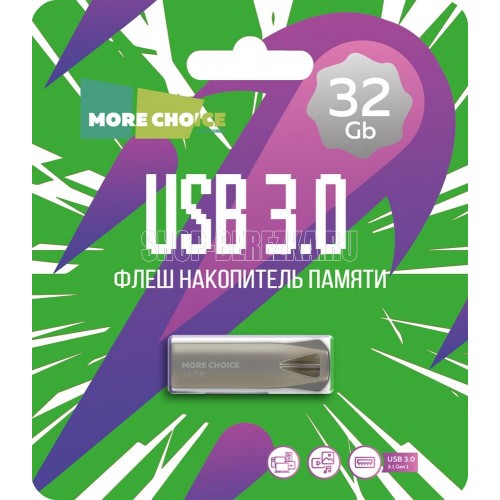 Производитель MORE CHOICE; Объем памяти 32 Гб; Выдвижной разъем Нет; Форм-фактор Стандарт; Водонепроницаемый корпус Нет