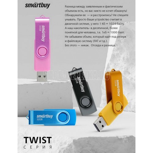 SMARTBUY (SB032GB2TWP) UFD 2.0 032GB Twist Pink розовый
