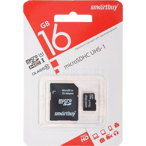 SMARTBUY (SB16GBSDCL10-01) MicroSDHC 16GB Сlass10 + адаптер